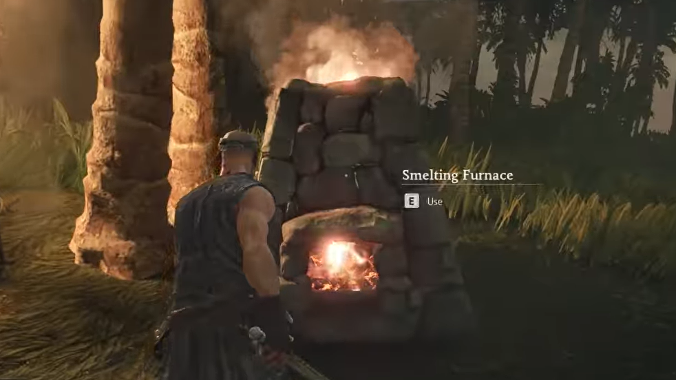 Step 3: Gather Clay from the muddy ground patches in the island interior, then build a Smelting Furnace. You'll also want a Charcoal Kiln to produce fuel for smelting.