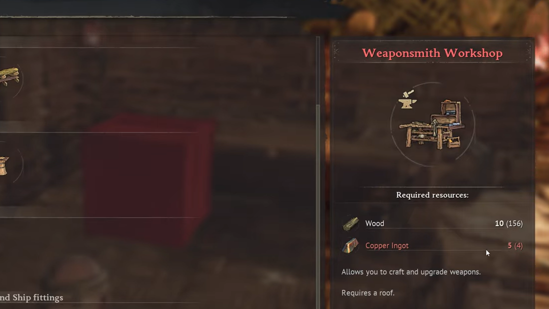 Step 5: Build the Weaponsmith Workshop once it becomes available through the Islander questline progression. Interact with it, select the Executioner from the halberd recipes, and craft it with your 7 Copper Ingots and 10 Wood.