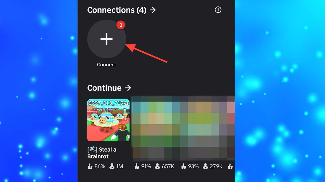 Step 2: Switch to your console and open Roblox on your main account. Navigate to the Connections or Friends menu.
