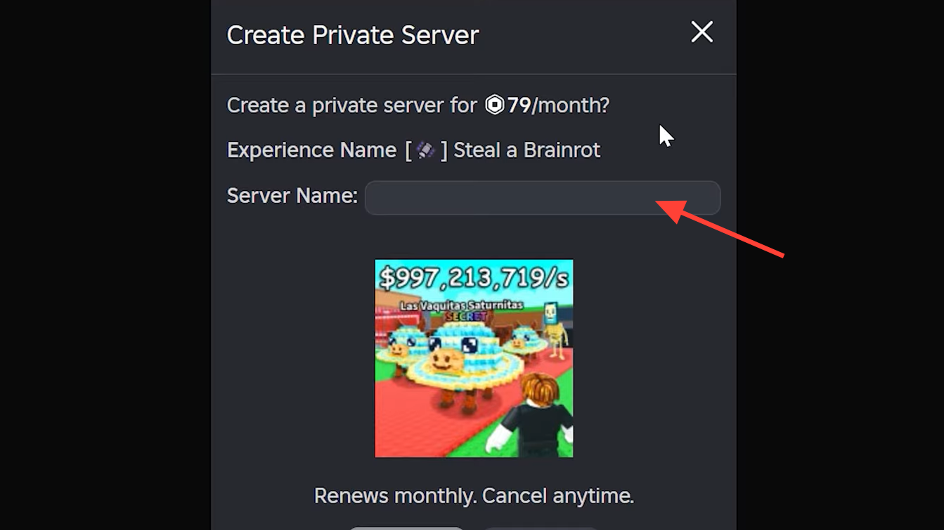 Private servers for Steal a Brainrot cost 79 Robux per month. Some other Roblox games offer free private servers, but Steal a Brainrot requires this subscription. The cost renews automatically unless canceled.