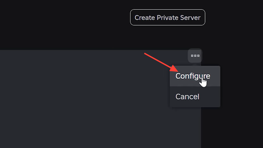 Step 4: Tap the three-dot menu icon next to your newly created private server. Select Configure from the menu options.