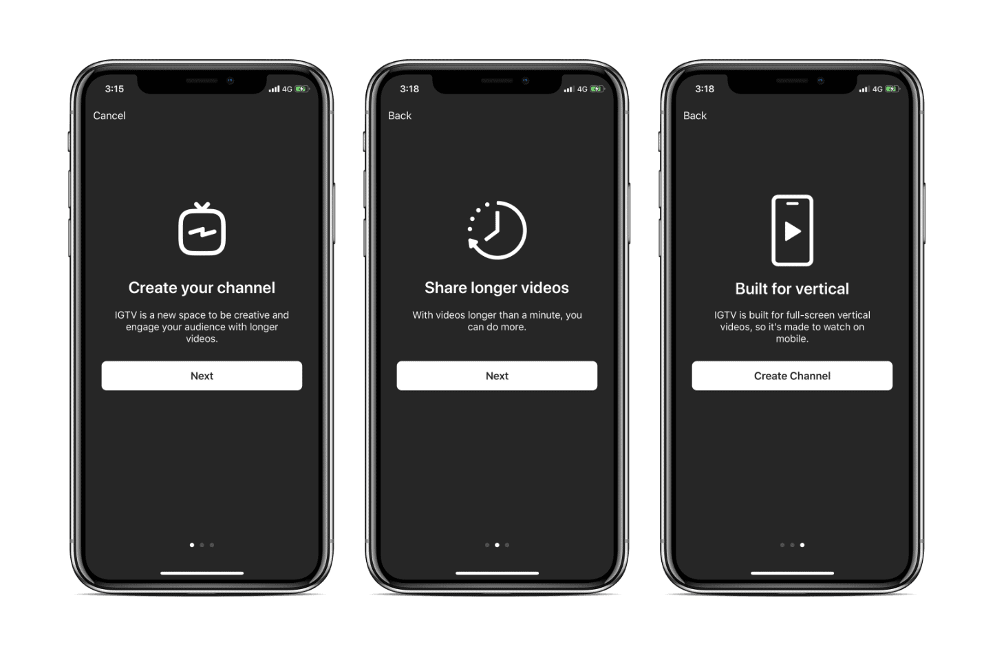 - You’ll be greeted with a set of screens to summarize the basics of an IGTV channel, continue by tapping Next, followed by Create Channel button at the last screen.