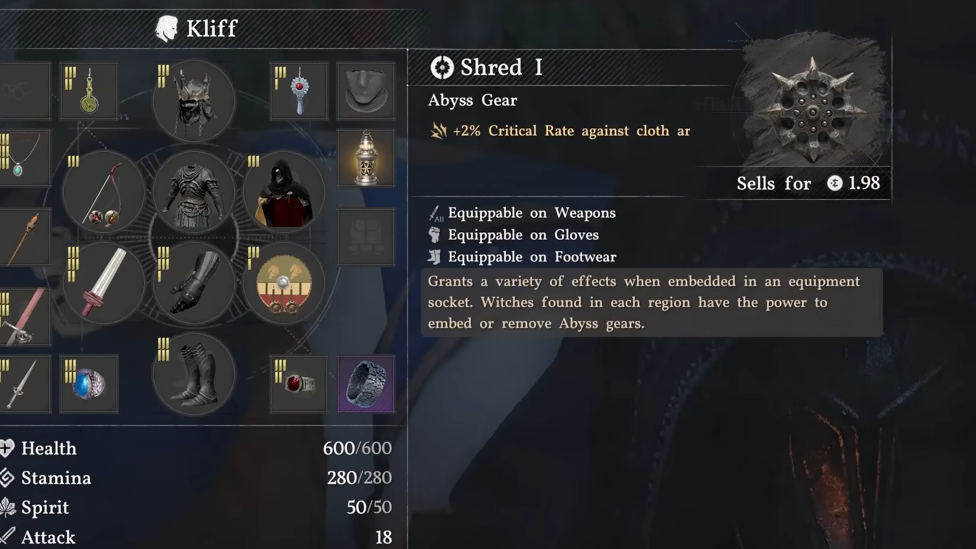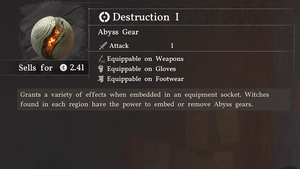 Greater Abyss Gears exist above Tier III and hit noticeably harder, but they carry durability and break after extended use. Save them for Overwhelming Beings like Ator, the Archon of Antumbra, or Beloth, the Darksworn. Do not socket Greater cores into your daily combat loadout.