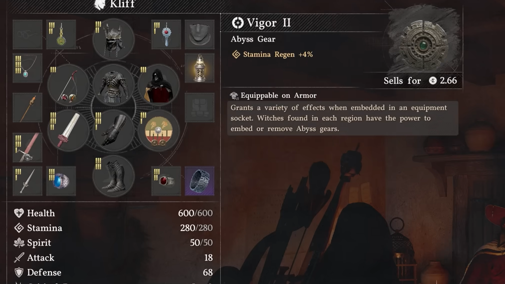 The second Witch onward unlocks crafting and upgrading. Each Witch sells two or three recipes tied to their theme. Elowen (Hernand) covers Vigor, Vitality, and Composure. Lyselia (Demeniss) covers Fortification, Aegis, and Fortitude. Bari (Pailune) covers Haste, Swift, and Ascent. Areciel (Crimson Desert) covers Destruction and Insight.