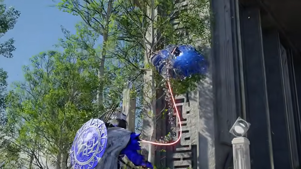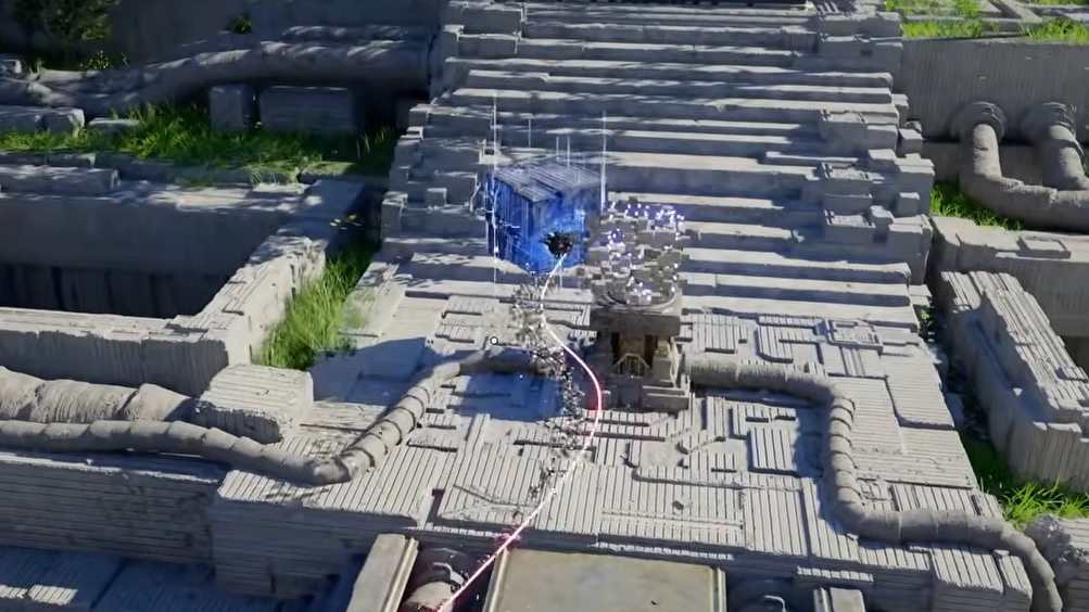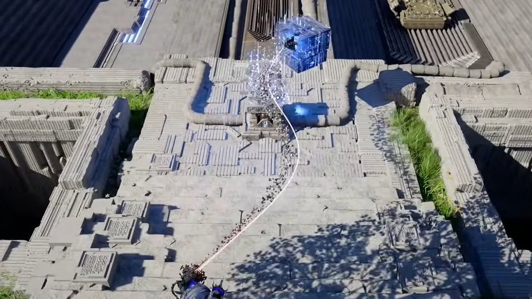 You will use two inputs constantly throughout the puzzle. Jumping Force Palm is performed by pressing Square / X / Space Bar and then pressing R3 / right stick / middle mouse button while airborne. Axiom Force is activated by holding L3 / left stick / Tab to aim, then releasing to grab or move objects.