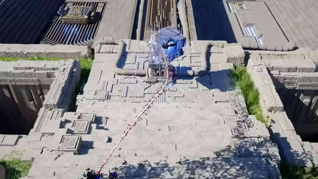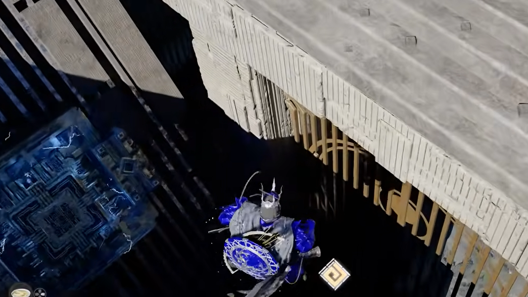 Step 8: Place this newly retrieved plate in the central housing — the one sitting in the divider between the left pair and right pair of housings. Jump and Force Palm downward to lock it in.
