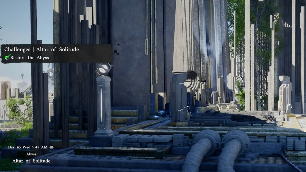 The Altar of Solitude is one of the longer Abyss Island puzzles in Crimson Desert, and it trips up a lot of players because the solution depends entirely on doing things in a precise sequence. The puzzle area is split into upper and lower levels connected by flipping platforms and a teleporter, and you need to shuttle energy plates (sometimes called "chips" or "circuits") between housings on the left side, right side, and center while using a blue energy cube to trigger platform rotations.