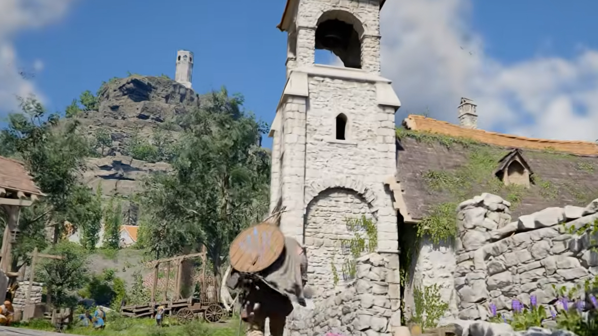 Early in the campaign, Kliff meets a Shai child in Hernand Town. After a short side task involving a lost cat, the game nudges you toward a nearby bell tower. Climbing up and ringing the bell summons a different Shai child, who lifts the fog of war for that part of the map. Every subsequent bell tower follows the same pattern — find it, ring it, watch the fog disappear — though some towers have unique climbing puzzles or mechanical gimmicks before the bell becomes available.