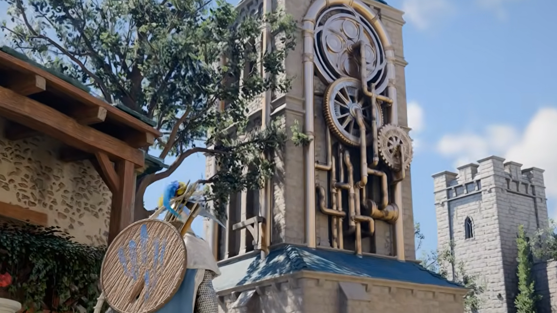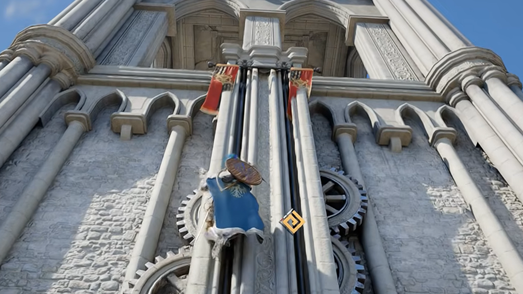 Step 2: From the bridge, start climbing the same steeple you just ascended. As you go higher, move horizontally toward the opposite side of the tower. Look for a platform with visible gears near it.