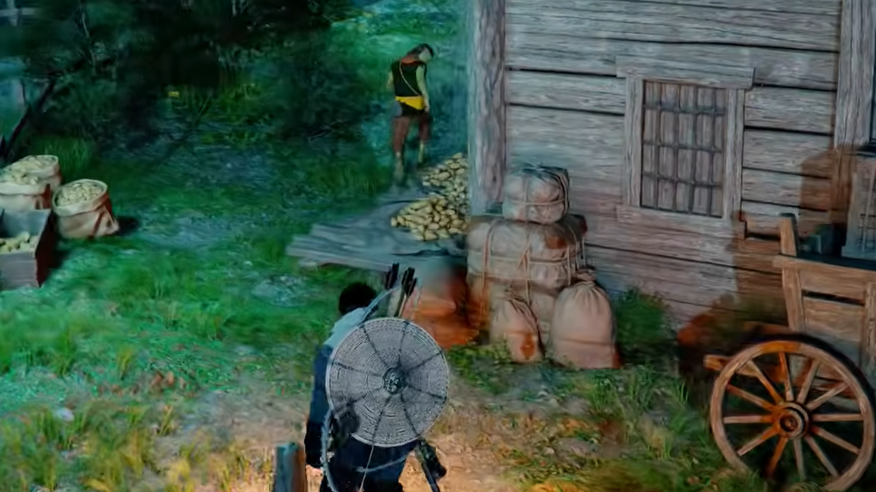Quick answer: Grab the Borzak bounty notice from a signpost in Delesyia (around Chapter 8), then ride to Fullharvest Farm. If he isn't in the marked search circle, head north/northeast of the farm at night to find him lurking nearby. Tackle him, punch him a few times, tie him up, and ride him back to the Delesyia prison for 15 silver.