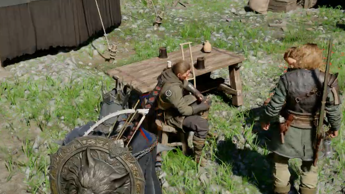 Two Greymanes — Ross and Carl — will already be at the camp when you arrive. Carl handles provisions, but his Support Camp Resources feature doesn't fully open until you've progressed further through Chapter 3 and encountered the Reed Devil. After that encounter, donating to Carl becomes available, and shortly after — once you complete "Rumors from the Sawmill" and read Shakatu's letter at the camp shrine — Camp Missions unlock as well, giving your donations an immediate purpose.