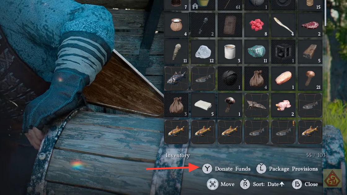 Step 5: Hit Confirm. The items leave your inventory permanently and are converted into camp resource points.