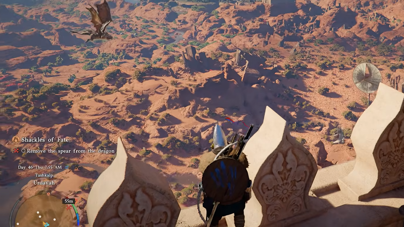 The Shackles of Fate quest in Crimson Desert's Chapter 9 tasks you with freeing the guardian deity of Urdavah — a dragon impaled by three spears — by physically mounting it mid-flight and ripping the spears out. The whole sequence is split into three distinct phases: catching the dragon, surviving on its back, and using Focused Force Palm to purify the taint. Each phase has its own controls and failure points, and the game does a poor job of explaining them clearly.