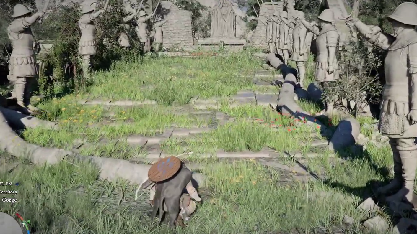 The deadly children's game from Netflix's Squid Game is recreated as a playable puzzle inside Crimson Desert. Travel to the Ancient Ruin in Drakesfall Gorge, where you'll find a row of statues arranged in a line. The central statue acts as the "watcher" — it periodically turns its head to scan the area.