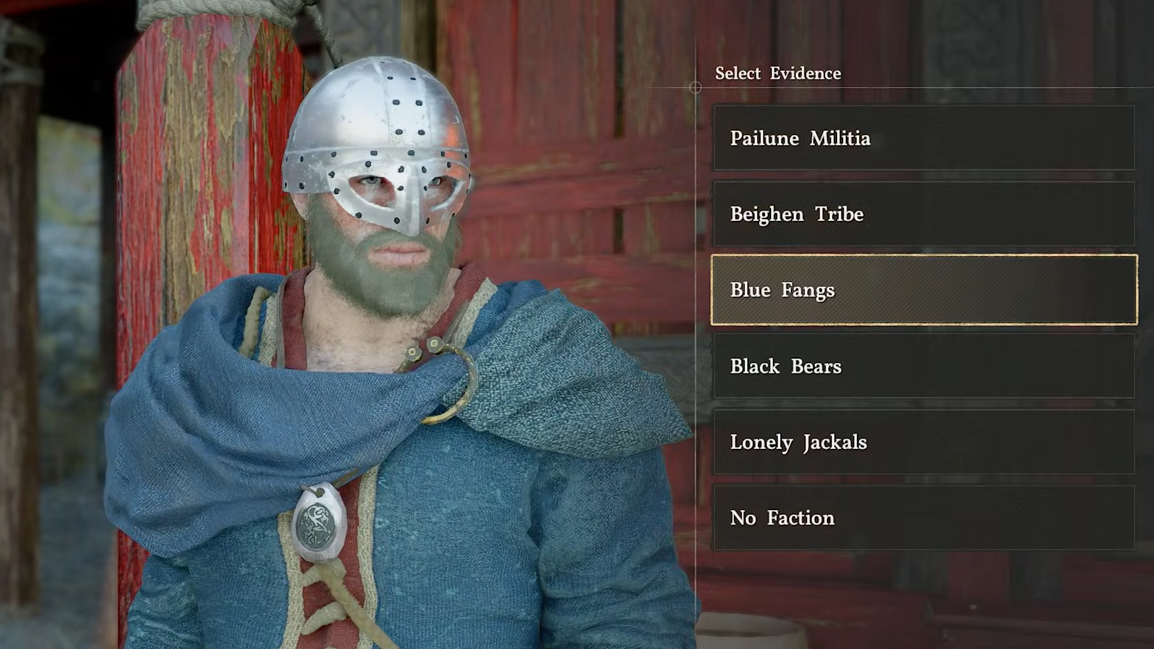 The Bared Fang quest in Beighen is the most eavesdrop-heavy sequence in the game. You cycle between listening in on villagers and then confronting a Blue Fangs guard with the information you've gathered, choosing the correct dialogue options and calling out his lies each time. Below is every step in order.