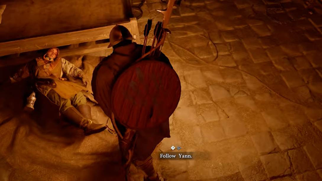 Once the cutscene ends, stealth is no longer required. Yann takes the lead, and you simply follow him out. Hold A on Xbox, X on PlayStation, or Left Shift on keyboard to keep pace with him automatically.