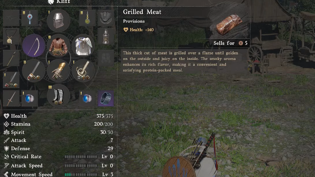 Step 1: Open your inventory and confirm you have at least one edible item. Anything tagged as providing Health, Spirit, or Stamina counts. Raw ingredients like fruit and meat work, but cooked meals restore significantly more HP.