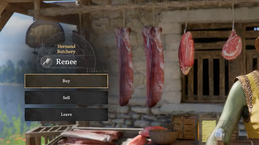 Meat comes from killing and skinning animals in the wild, or you can purchase it from the Butcher in Hernand. Fruit and vegetables can be grown at an upgraded Howling Hill Camp or bought from the Grocer's Shop, also in Hernand. Merchants across Pywel — particularly provisioners — sell prepared food as well, so check their inventories whenever you pass through a settlement.