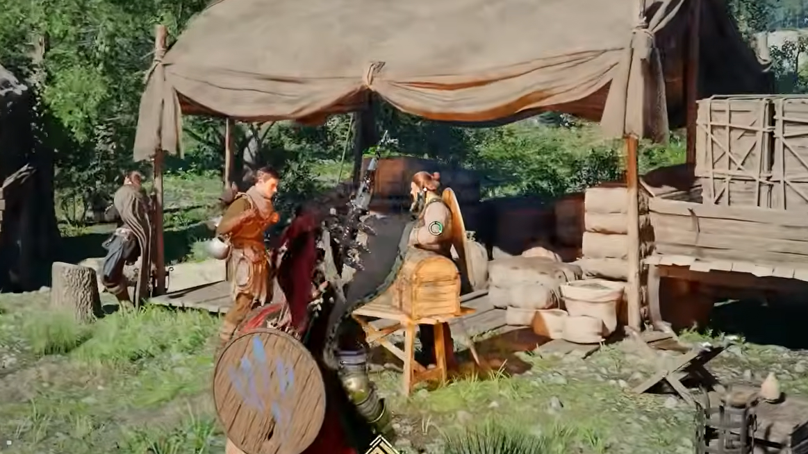 The Cooking and Crafting menus gained a "Make Now" button that immediately crafts or cooks a selected recipe without requiring you to manually pick each ingredient. A "Store all selected items" function (Shift+RMB on keyboard, □ on PS5, X on Xbox) lets you dump inventory into private storage in one action. The private storage chest at Howling Hill Camp moved from behind Karl to inside Kliff's tent.