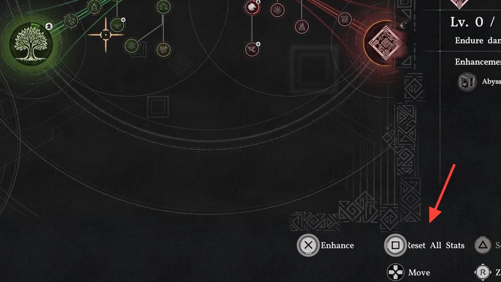 Step 2: Look at the bottom-right corner of the Skill Tree screen. You'll see a prompt labeled Reset Stats alongside the corresponding controller or keyboard input.