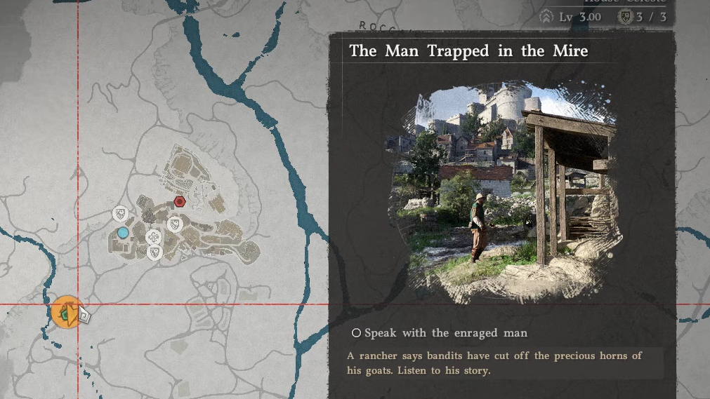 The Man Trapped in the Mire is the 22nd main quest in Crimson Desert and falls under the Hernand in Chaos sub-chapter of Chapter 2: Golden Greed. A rancher named Ibano is furious because bandits cut the horns off his goats and stole his goods. Your job is to track the thieves, read a memory fragment, grab the stolen item, and bring it back.