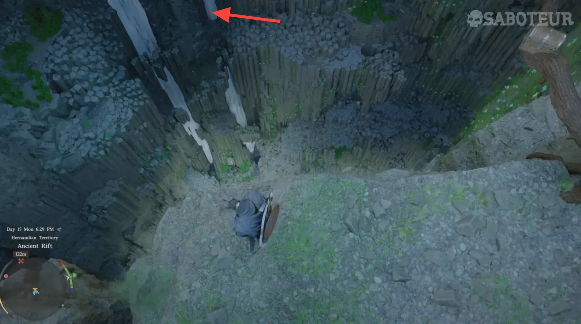 Step 1: Head to the rivers near the Ancient Rift. If you're approaching from above, you can drop off the cliff and use your flight ability to glide toward the waterfall.
