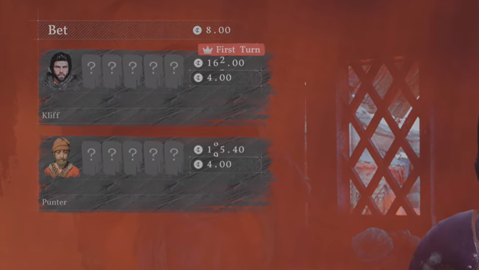 If you are using the manual save strategy to farm Silver at the Beighen gambling den, a Bust hand is an immediate signal to reload your save. There is no reason to continue a round you cannot win.