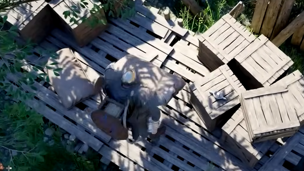 Step 1: Head to the marker in the middle of the camp area. You'll find three sacks lying on the ground near a pile of supplies.