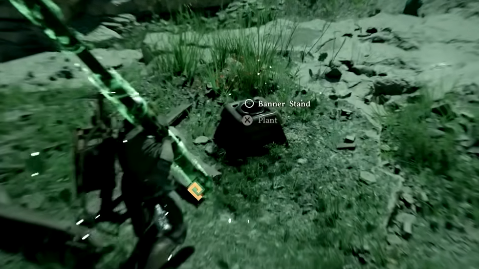 Step 3: While holding the banner, walk to the nearby stand. Aim at the stand (Ctrl on PC to target) and place the banner into it. The banner locks upright, and the objective is complete.
