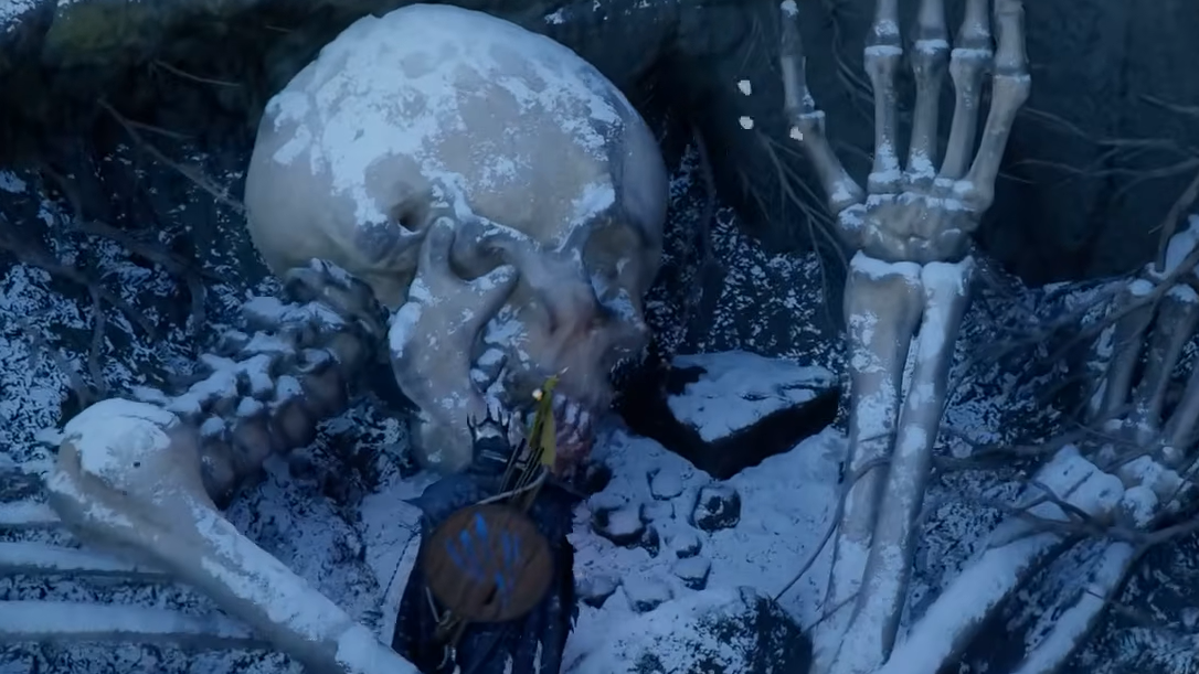 The Darkbringer sits inside the jaws of a giant skeleton in the frozen tundras of Pailune, southwest of the Silver Mountains. The nearest fast travel point is the White Wastes Sanctuary — head west from there. The trek is long, and the cold is punishing, so make sure your cold resistance is adequate before setting out. Once you pick it up, its heavy attacks summon orbs that deal additional damage, giving it a unique offensive edge no other greatsword offers.