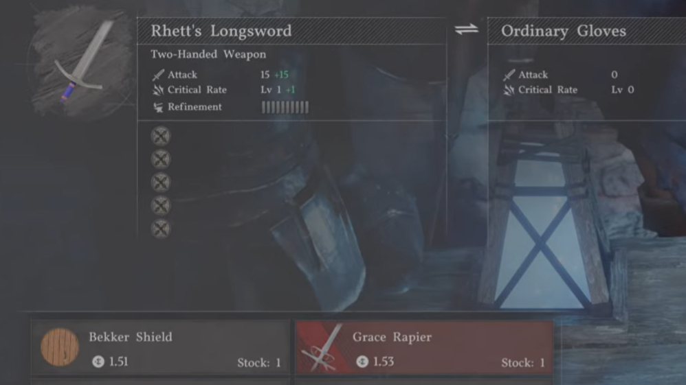 Later in the story, Rhett's Longsword becomes available by completing Rhett's quest chain in Hernand, and the Golden Vanguard spear drops from defeating the boss Gregor.