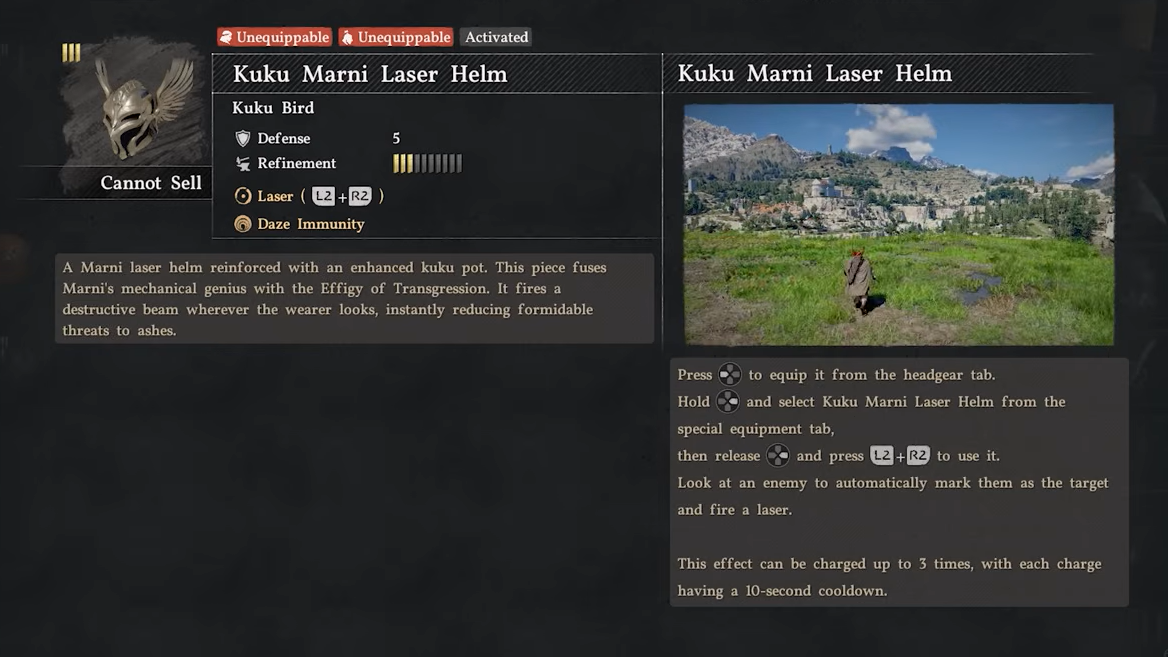 Once you've crafted the Kuku Marni Laser Helm, equip and assign it the same way as the base version. The three-shot capacity and refinable defense make it one of the strongest special equipment options in Crimson Desert, well worth the scavenger hunt across Delesyia's hostile landscape.