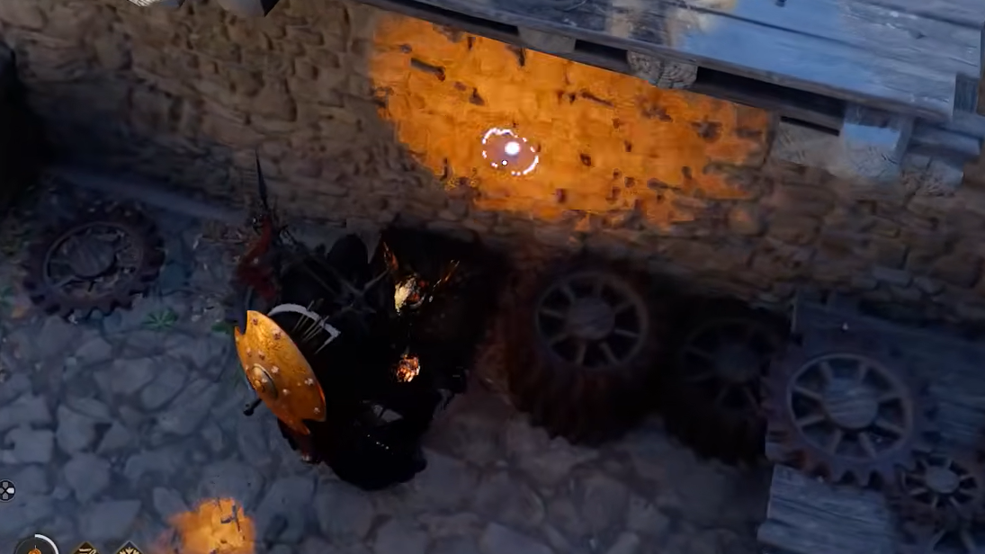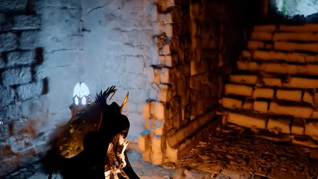 Step 1: Once inside the fortress walls, look for a small workshop room to the left of the main path, accessible through an arched opening. You can also drop in through the building's missing roof to bypass the courtyard golem entirely.