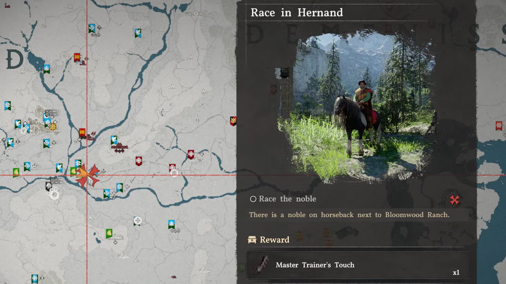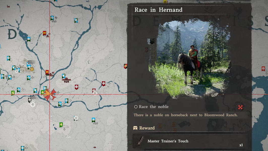 The Master Trainer's Touch doesn't come from a standalone mission. It sits inside the Hooves Through the Wind quest chain, which belongs to the broader House Serkis faction questline in Hernand. Because Hernand's faction quests are interconnected, you need to work through them in sequence. There's no shortcut to skip ahead — completing earlier quests in the chain is what causes House Serkis to eventually offer the Race in Hernand mission.