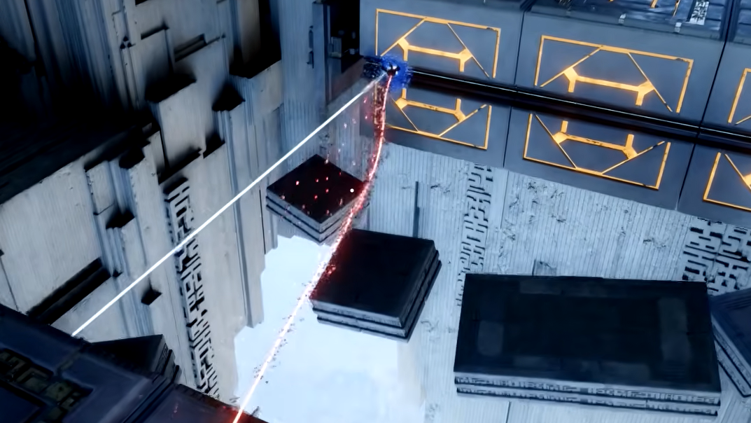 Step 1: When you enter the room, look to the left side for a sliding device. Use Axiom Force on it and push it until it lines up with the yellow button on the right wall. The button should turn blue once the alignment is correct.