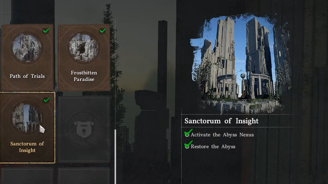 The Sanctorum of Insight falls under the Spire of the Stars group of Abyss regions, alongside the Secret Garden and the Vault of Vengeance. Completing it also opens a Skybridge that connects to the Secret Garden, so finishing the Sanctorum first is necessary if you want to continue deeper into the Abyss.