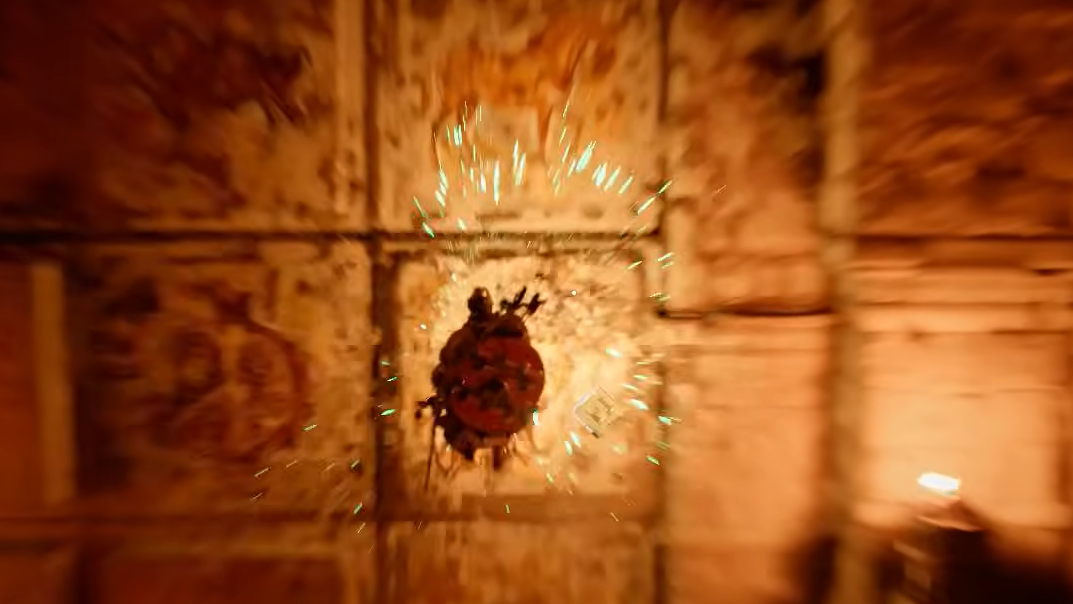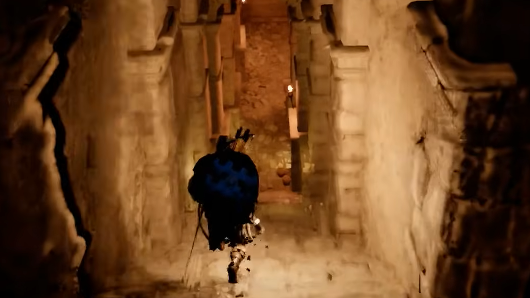 Step 1: Head down the stairs once the vines are cleared. The first hallway has flame traps that shoot fire from the walls at regular intervals. Time your movement between bursts. If you take heavy damage, there's a pool of water ahead that you can run through to douse yourself.