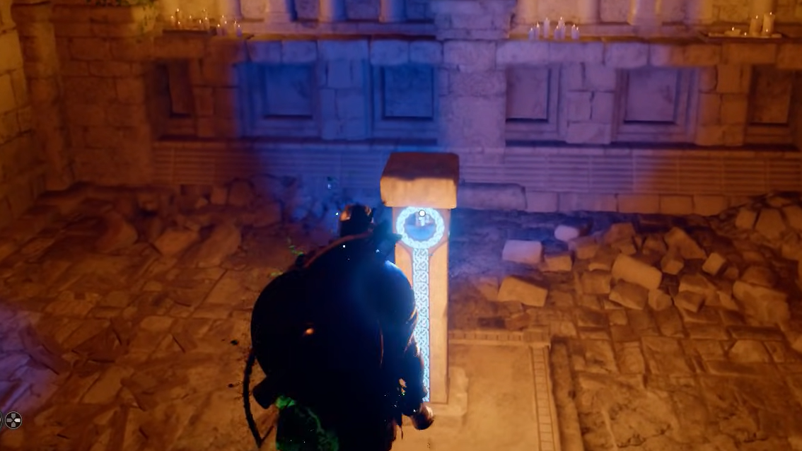Step 3: Return to the main room and take the left path, which leads into a corridor with more traps and a zipline. Ignore the zipline entirely. Instead, use Axiom Force on the right wall to create a climbable path, then traverse across and use Axiom Force again to reach the exit on the other side. This brings you to the puzzle wall.