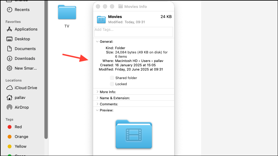 Step 2: Select the folder you want to customize, then press Command-I (⌘I) to open the Get Info window.