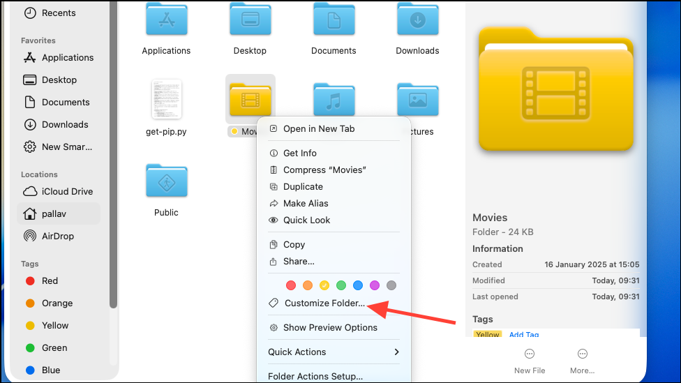 Step 1: In Finder, locate the folder you want to customize. Right-click (or Control-click) the folder to open the context menu.