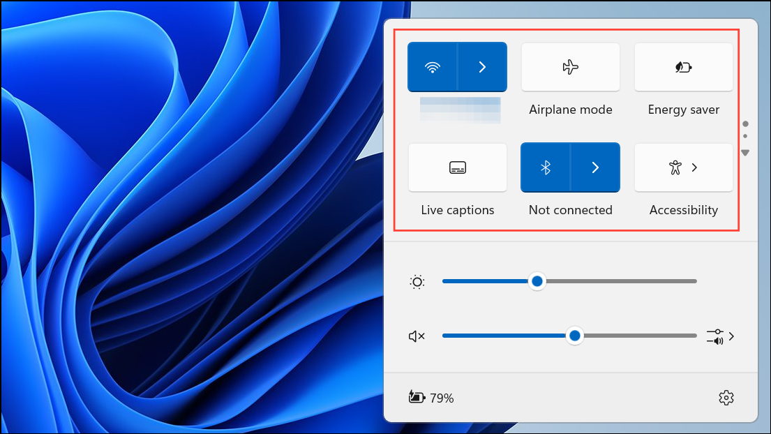 Step 2: Locate the quick settings tiles (such as Wi-Fi, Bluetooth, Airplane Mode, etc.) arranged in a grid. In Windows 11 24H2, you will notice the absence of the pencil (edit) icon that previously allowed for more direct customization.