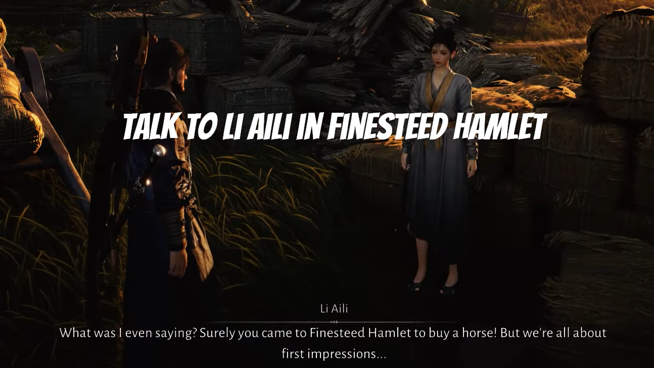Step 1: After reading Li Aili’s letter, teleport to Finesteed Hamlet’s Binding Stone and change the in-game time to the next day, around Wu hour (mid‑afternoon). Go to the nearby barn and talk to Li Aili there.