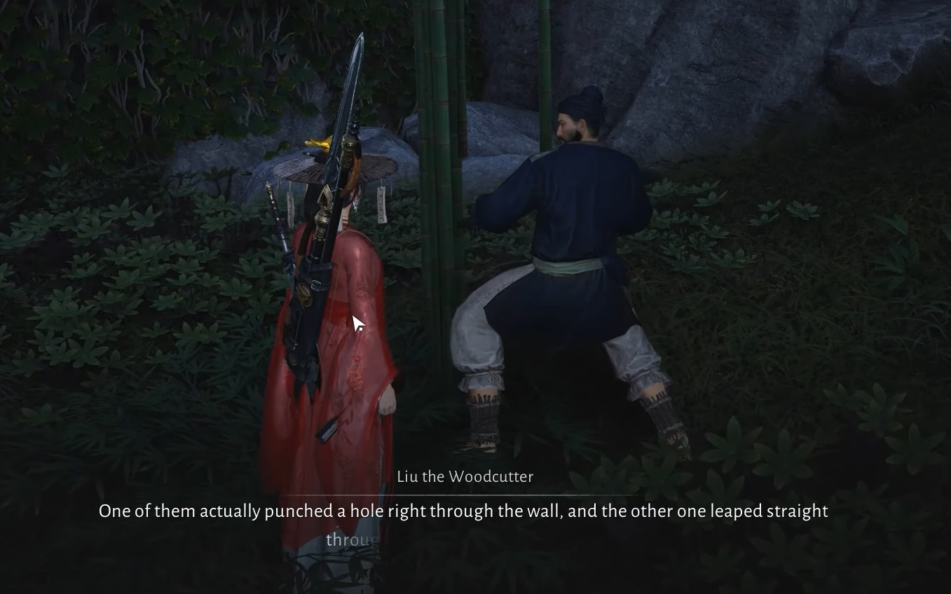 Step 1: Reach Peace Bell Tower and locate Liu the Woodcutter near a tree beside him.