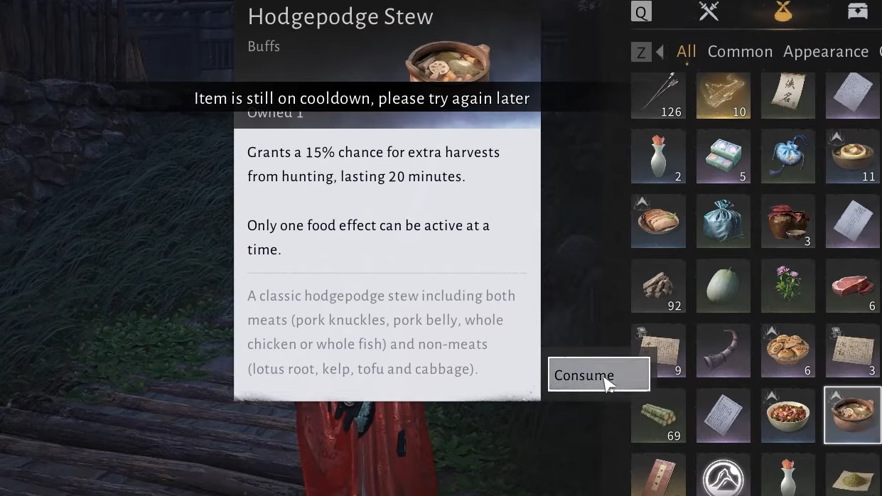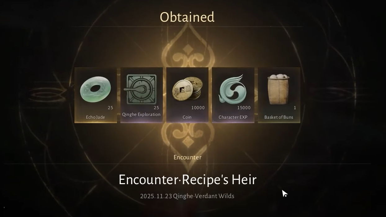 Step 3: After consuming enough unique Qinghe-specific meals, the Recipe’s Heir random encounter can trigger. When it appears, complete the encounter to earn the Clash Between the Water Lady fragment.