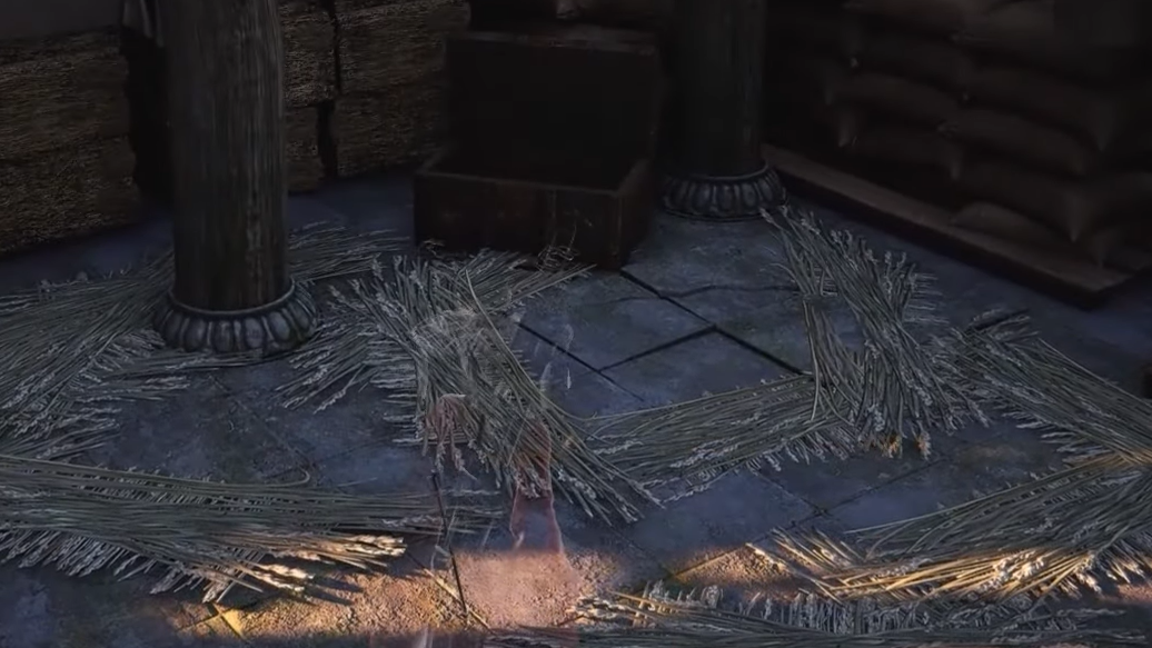 Step 2: In the study, drop through the hole in the floor, but land on the first level below rather than falling to the very bottom.