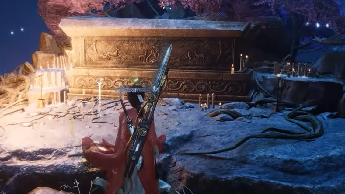 Step 2: Follow the path until you reach a tree with glowing blue leaves. Near this tree stands the spirit of Li Zuo. Speak to Li Zuo to obtain the Feelings Laid to Rest in a Firefly Grave fragment.