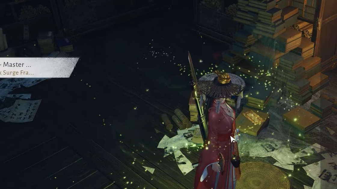 Step 3: Investigate the books on your right on that intermediate floor. Inspecting these books awards the Master Wei fragment.