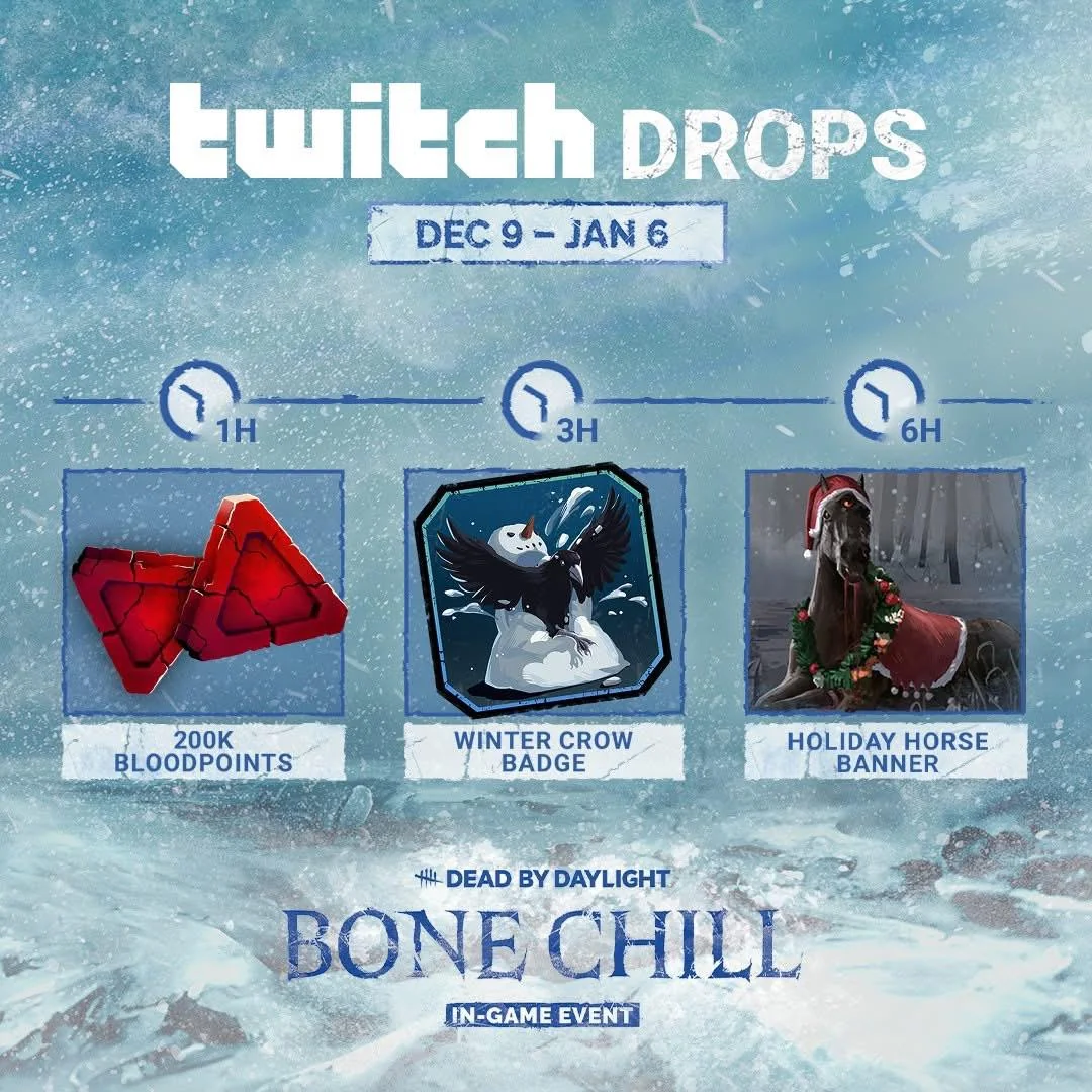 - Watch Twitch streams for Bone Chill Twitch Drops, including Bloodpoints, a badge, and a banner.