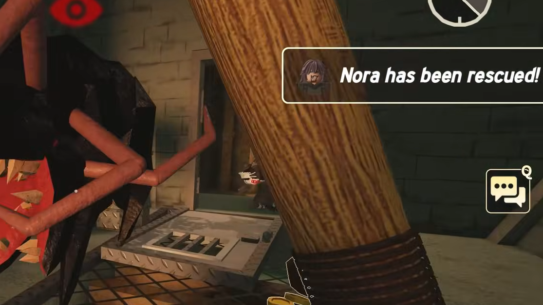 Step 2: Walk up to Nora and hold the interaction button until the untie animation completes. Releasing too early cancels the rescue, so keep holding until the prompt finishes.