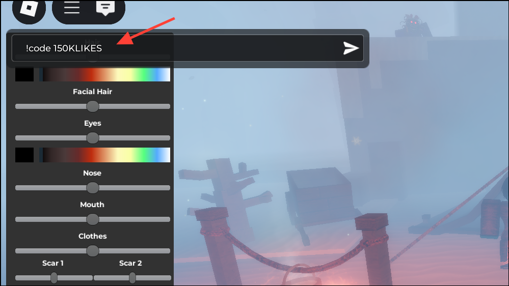 Step 3: Type the code using the required prefix, for example: !code 150KLIKES.